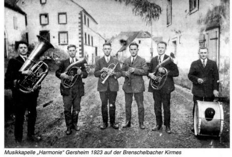 1922: In Gersheim finden sich einige Männer zusammen, um gemeinsam zu musizieren. Die sechs Musikanten, die vor allem Tanzmusik spielen, nennen sich Musikkapelle „Harmonie“ Gersheim.