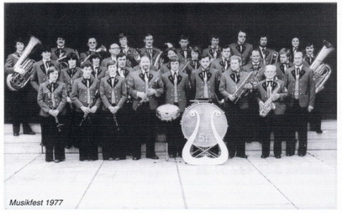 1977: Das Orchester nimmt erfolgreich an den Wertungsspielen teil. Mit 114 Punkten in der Mittelstufe erringt die Kapelle einen hervorragenden 1. Rang.